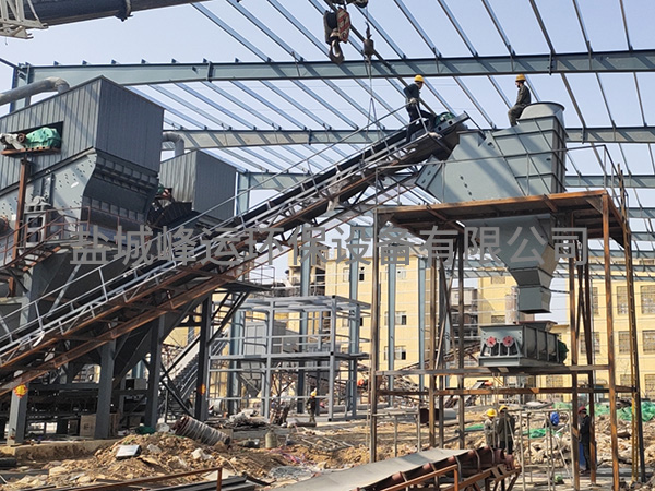 (5)脱粉机的安装:根据出料皮带机的高度和位置确定脱粉机的安装高度和方位,用槽钢支撑固定焊牢。